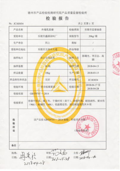 外墻乳膠漆檢驗報告